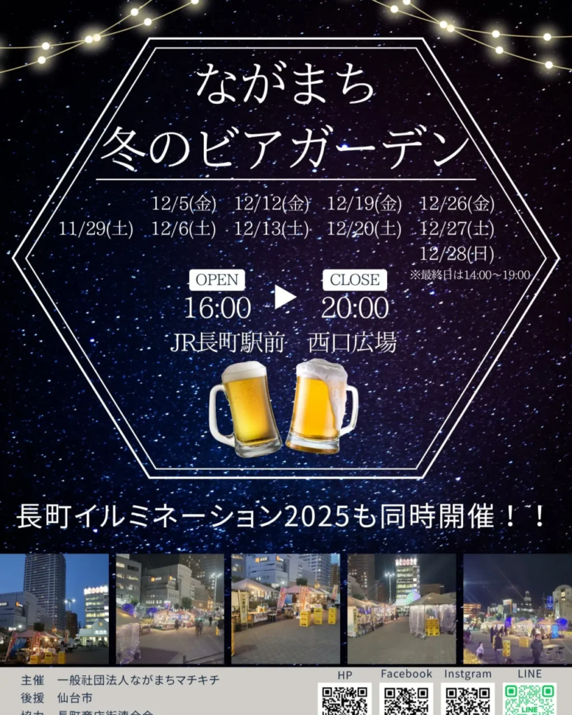 JR長町駅前西口広場で、『ながまち冬のビアガーデン』を、2025年12月5日から27日までの金土曜日と、28日(日)に開催します!